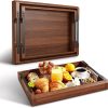 Set of 2 Acacia Wood Serving Tray with Handles, 10x10x2 Inch Decorative Serving Trays for Food, Ottoman Tray, Square Coffee Table Trays for Dinner, Coffee, Wine, Appetizer